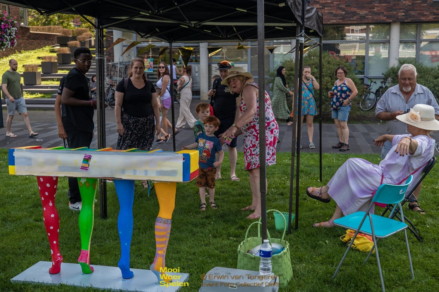 Spel. Gooi op Kleur. Gooi van afstand op kleine kleurrijke tafel. Een gemoedelijke attractie waar met wat geluk zelfs een prijsje te winnen valt. Voor de gezelligheid.